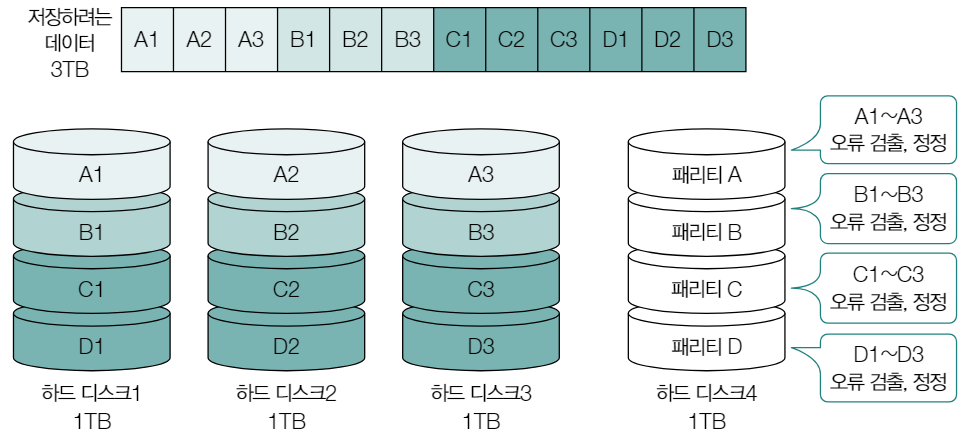 SSAFY CS 스터디이취컴 Chapter 2-5 정리이 페이지에서SSAFY CS 스터디: 이취컴 Chapter 2-5 정리 Chapter 02 컴퓨터 구조 - 5 보조기억장치와 입출력장치p.107~131 RAID 오늘날의 대중적인 보조기억장치